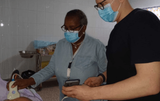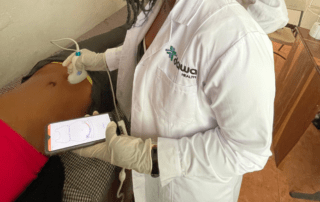 We scanned a woman using BabyChecker recently during our open-air clinic session. She was due in about a week or two. This was her first scan with BabyChecker; it showed she had placenta previa. According to her, she didn’t have that information, and there was no record of the scan that she’d gone to the hospital. With this information, we were able to refer her to the hospital.”